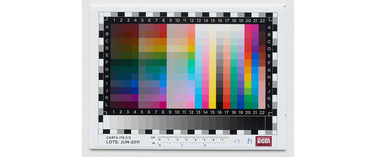 To create a color profile, an IT8 color target, as shown below, should be printed on a fully calibrated printer. This target consists of 24 grey patches and 256 color patches which have been precisely defined by the American National Standards Institute. Each patch must be read by a spectrophotometer, a device which measures the reflectance of light across a wide spectrum of wavelengths. These values are fed into the software which creates the profile.