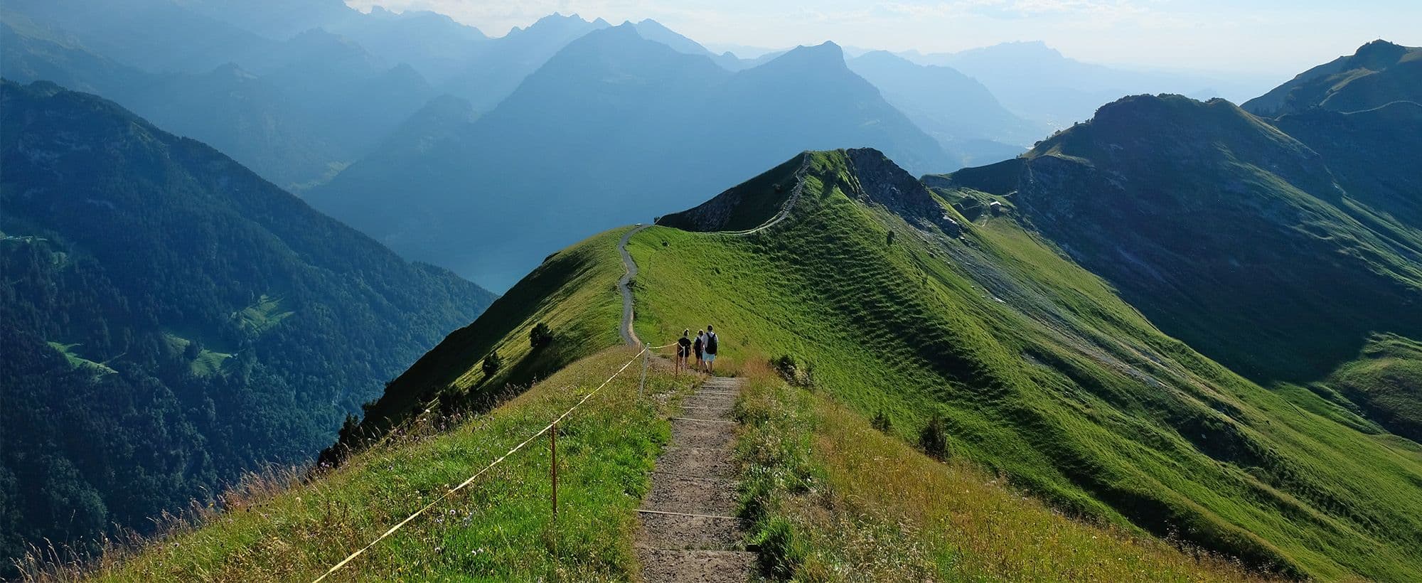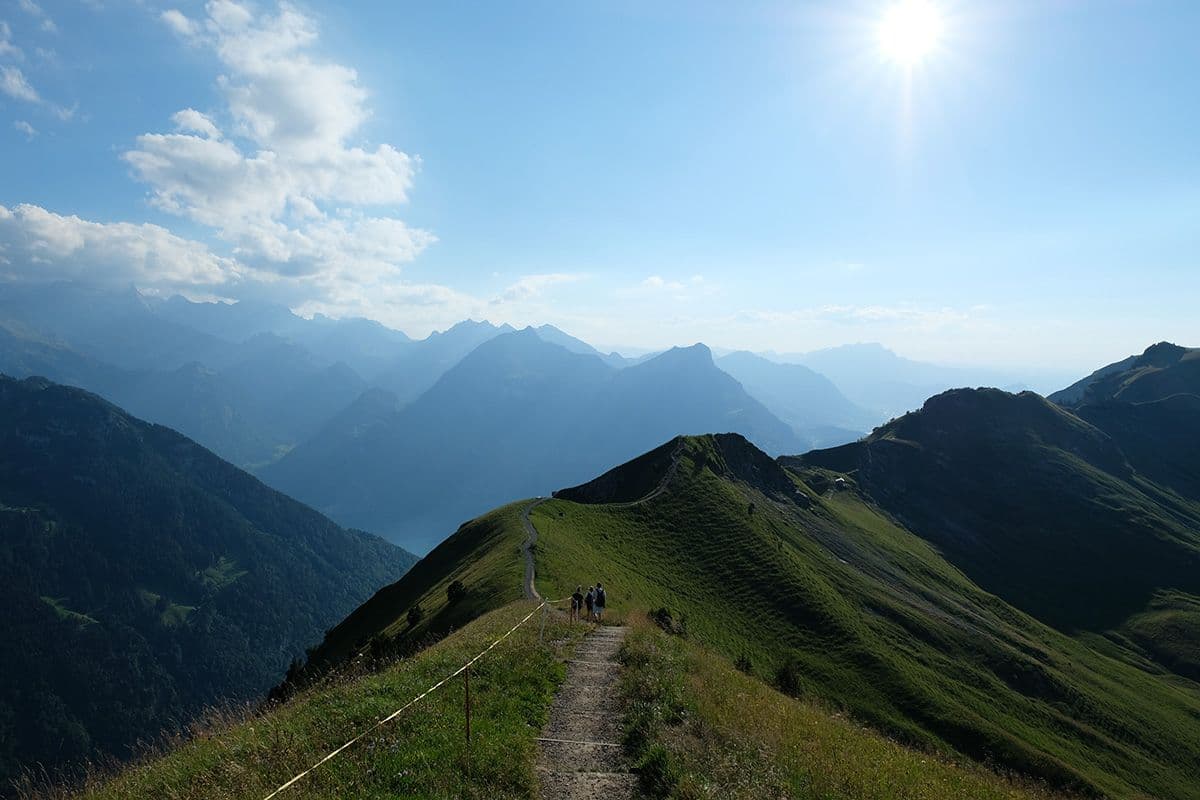 The Stoos ridge hike trail goes from Klingenstock to Fronalpstock. A fun fact is that to reach Stoos you first take the steepest funicular train in the world, from there you can start the hike.